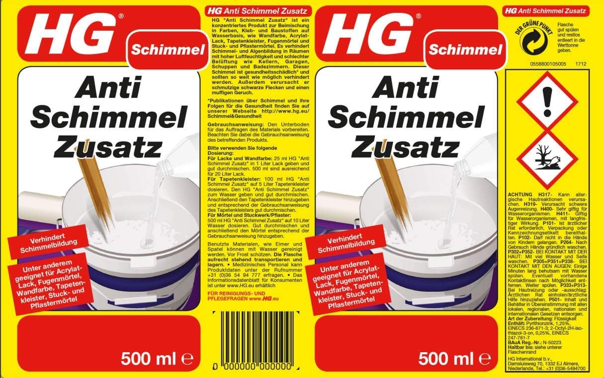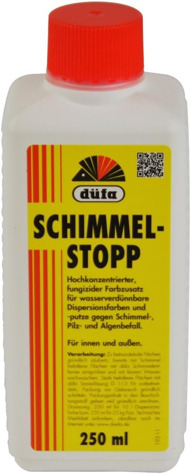 Badezimmer antischimmelzusatz. Auf 1 Liter Farbe wird 25 ml zugegeben. Verhindert die Bildung von Schimmel Moos Pilzen und Algen. Es verhindert den Schimmelbefall.